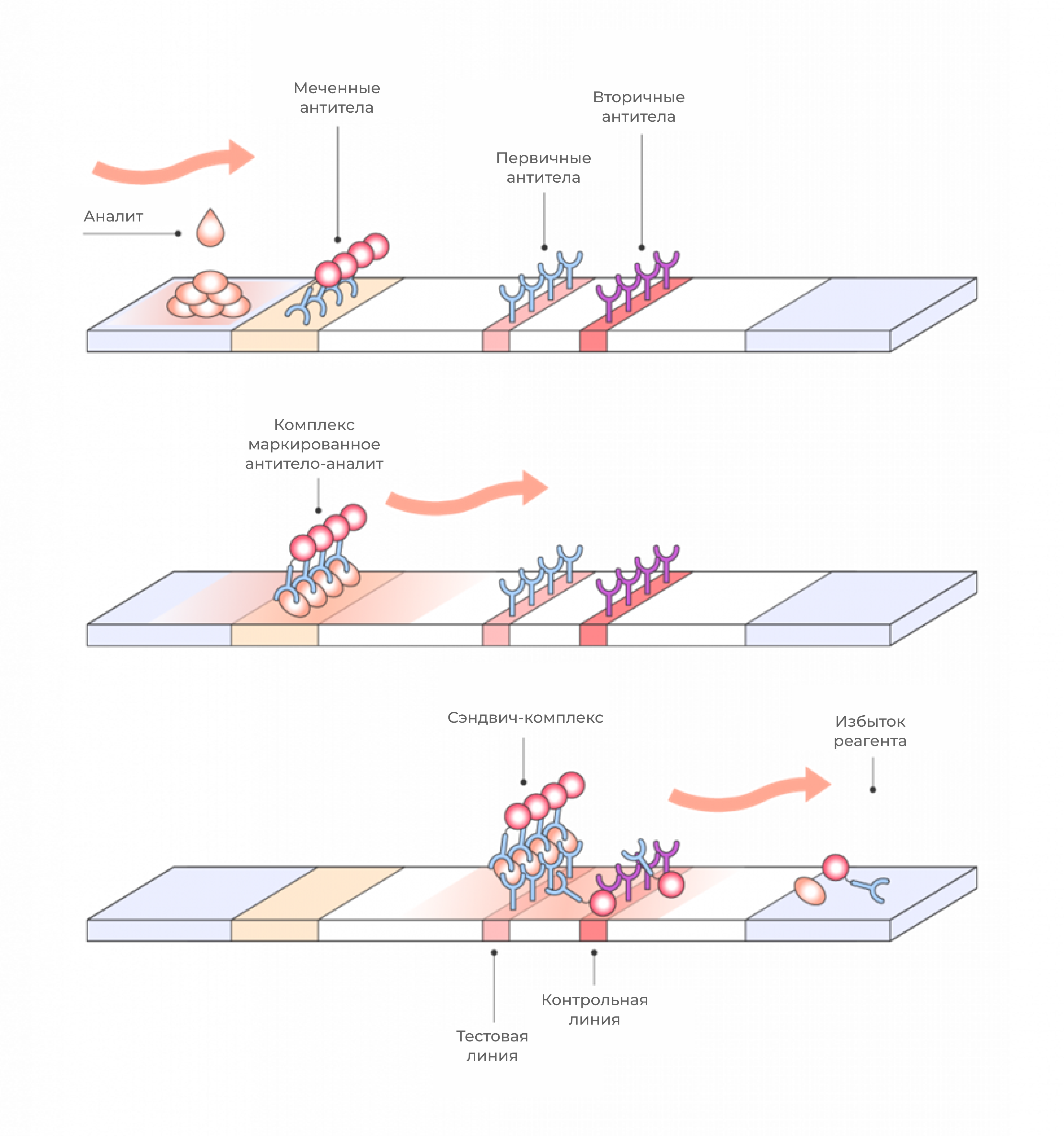 Рисунок 1. Типичная схема иммунохроматографической тест-полоски.